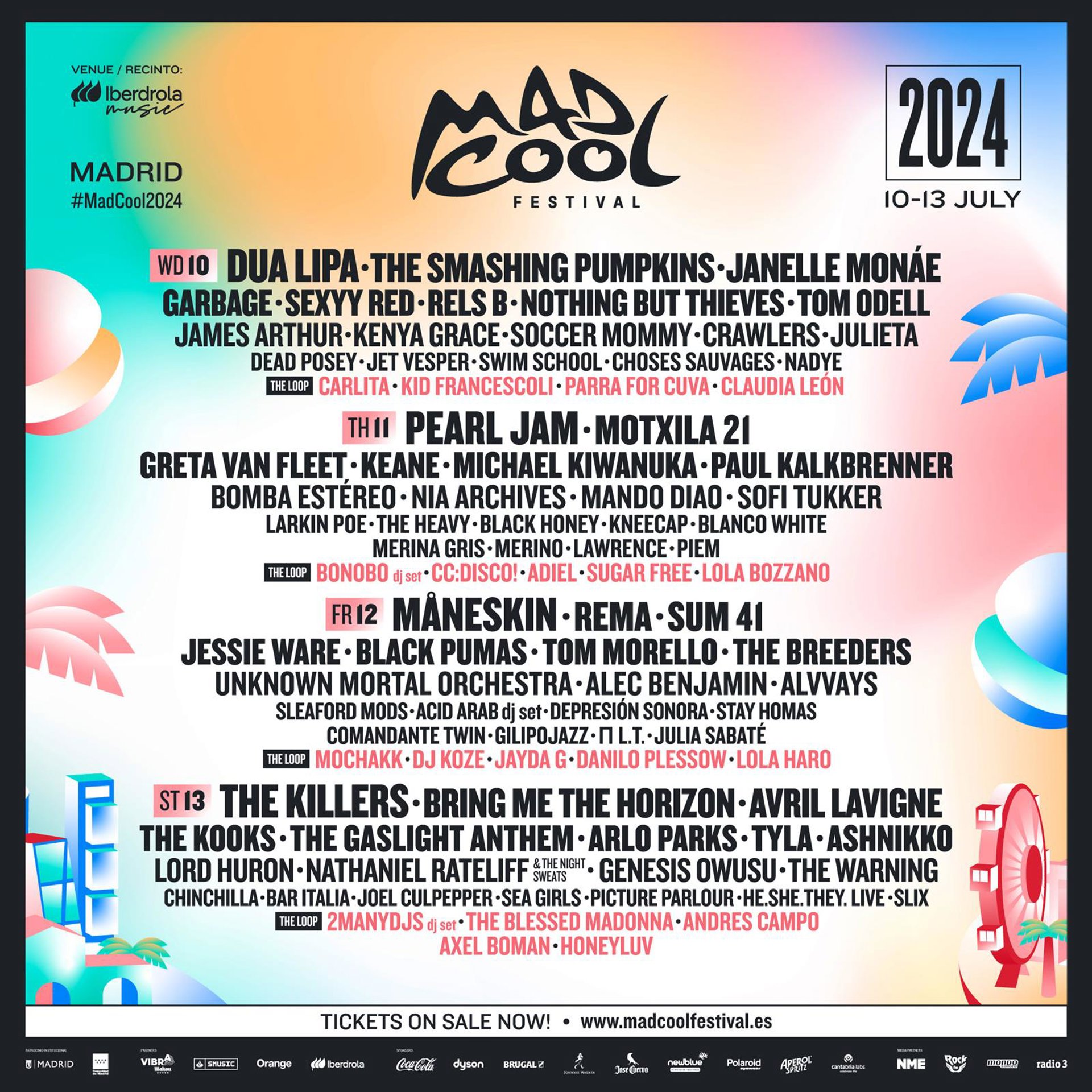 Todos los nuevos confirmados se unirán a artistas como Peal Jam, Dua Lipa, The Smashing Pumkins, Garbage, Avril Lavigne, Rels B, Janelle Monáe, sum 41 y a los ganadores de 'Mad Cool Talent by Vibra Mahou' y 'Mad Cool Dj Talent by Vibra Maho'.
