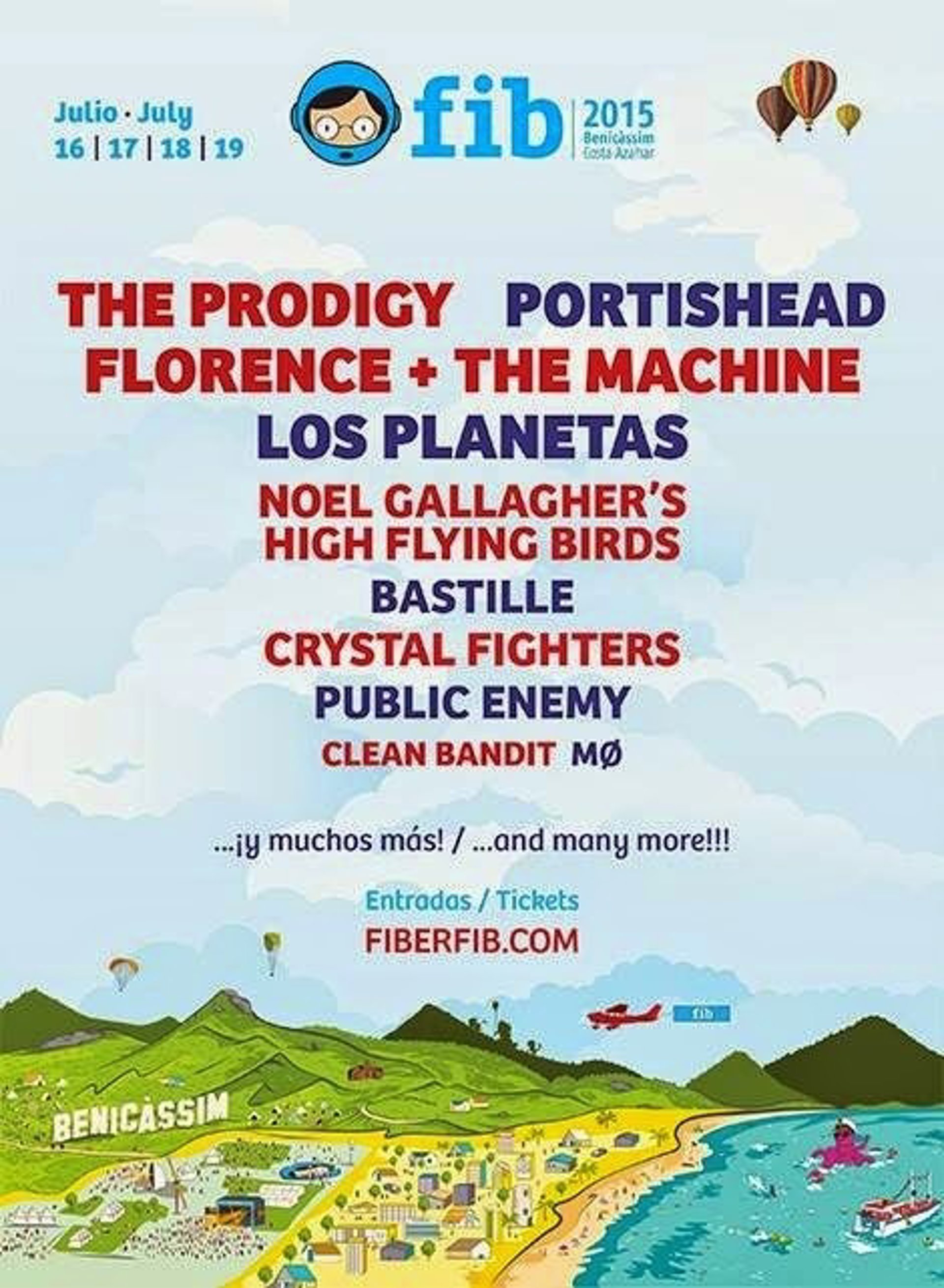 The Prodigy, Florence + The Machine, Portishead, Los Planetas, Noel Gallagher's High Flying Birds, Bastille, Public Enemy, Crystal Fighters, Clean Bandit y Mo integran la primera tanda de confirmacione del Festival Internacional de Benicàssim (FIB) 2015, que se celebrará el próximo mes de julio en la localidad castellonense.