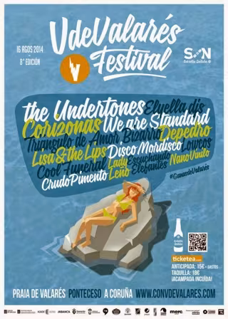 El Festival V de Valarés SON Estrella Galicia 2014 confirma contará el próximo 16 de agosto con un total de 14 artistas para su edición de este año, a celebrar en la playa de Balarés en Ponteceso (A Coruña).