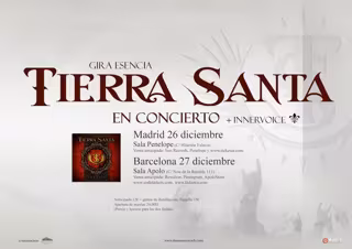 Tierra Santa anuncian dos fechas de directo para el mes de diciembre: 26 de diciembre en Sala Penélope (Madrid) y 27 de diciembre en Sala Apolo (Barcelona).