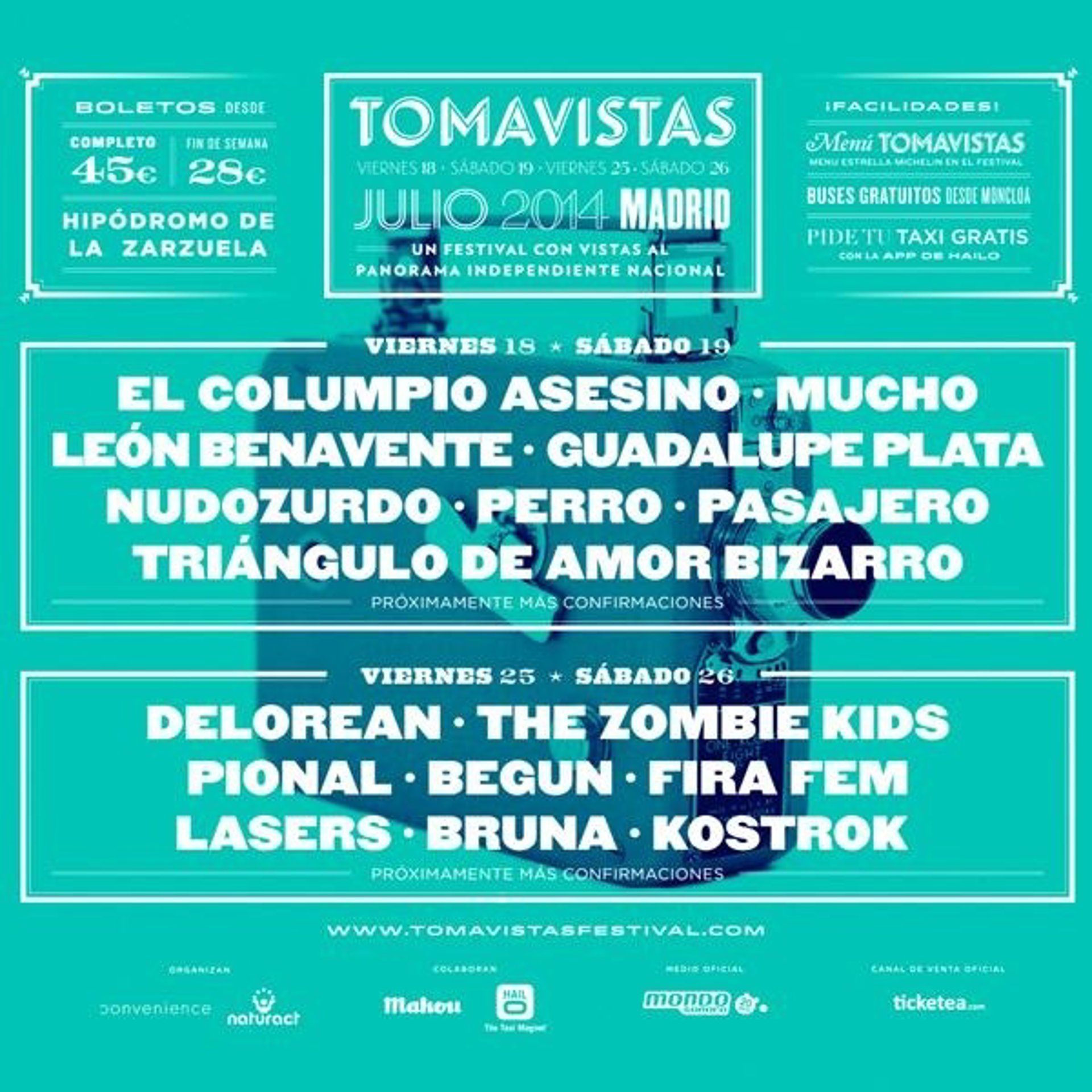 Así, por Tomavistas Pop-Rock (18 y 19 de julio) pasarán El Columpio Asesino, León Benavente, Triángulo de Amor Bizarro, Nudozurdo, Perro, Guadalupe Plata, Mucho y Pasajero.