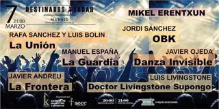 Rafa Sanchez y Luis Bolin de La Unión, Mikel Erentxun, Manuel España de La Guardia, Luis Livingstone de Dr Livingstone Supongo, Jordi Sánchez de OBK, Javier Ojeda de Danza Invisible y Javier Andreu de La Frontera serán los participantes.