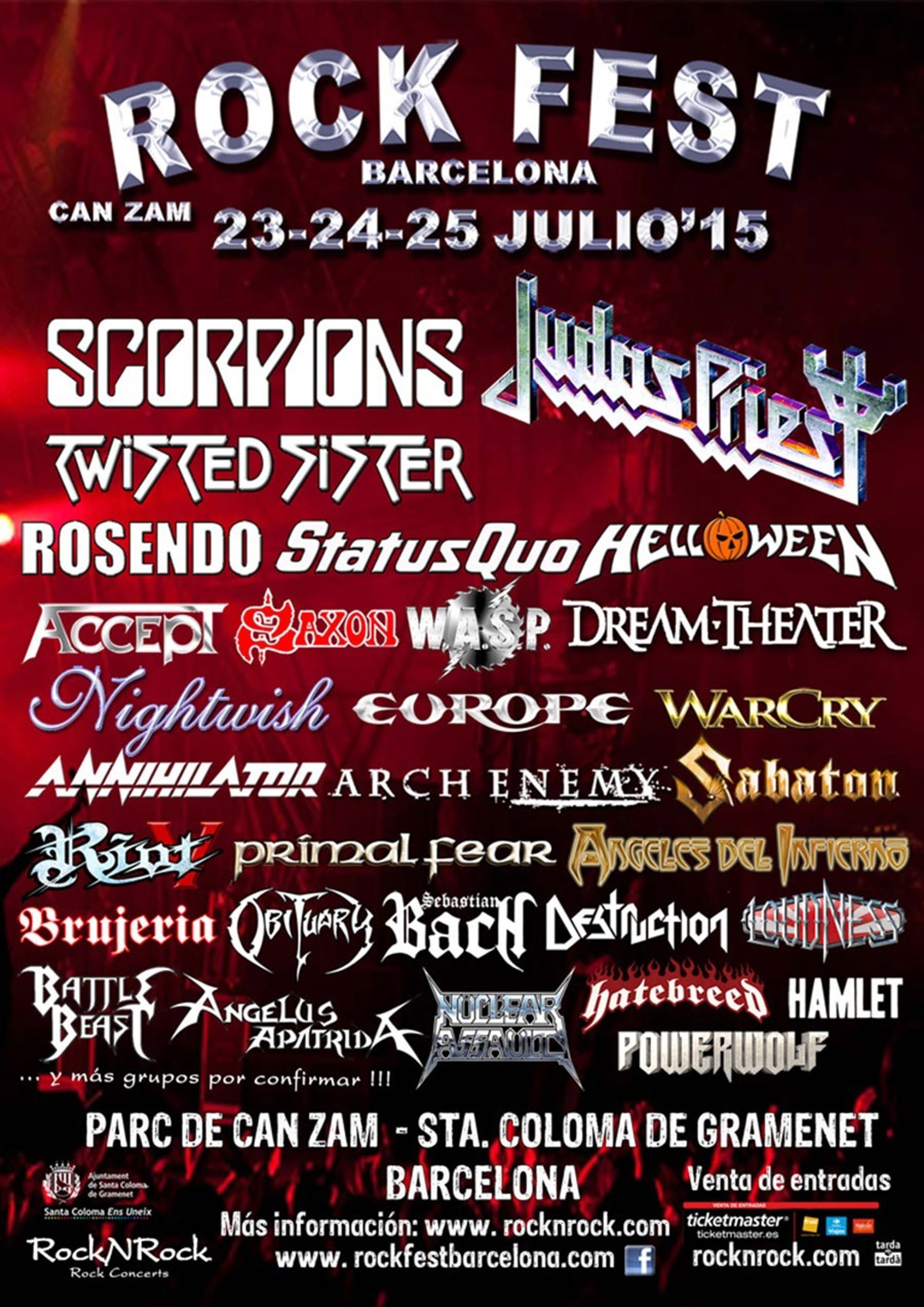 Se unen así a un cartel con Judas Priest, Scorpions, Twisted Sister, WASP, Dream Theater, Warcry, Accept, Arch Enemy, Status Quo, Rosendo, Destruction, Nightwish, Angelus Apatrida, Hamlet, Saxon, Europe, Helloween, Ángeles del Infierno, Recordant SangtraÏt (LGP), Asphixyon, Powerwolf, Battle Beast, Annihilator, Nuclear Assault, Hatebreed, Brujería, Sebastian Bach, Sabaton, Obituary, Primal Fear, Riot V y Loudness.