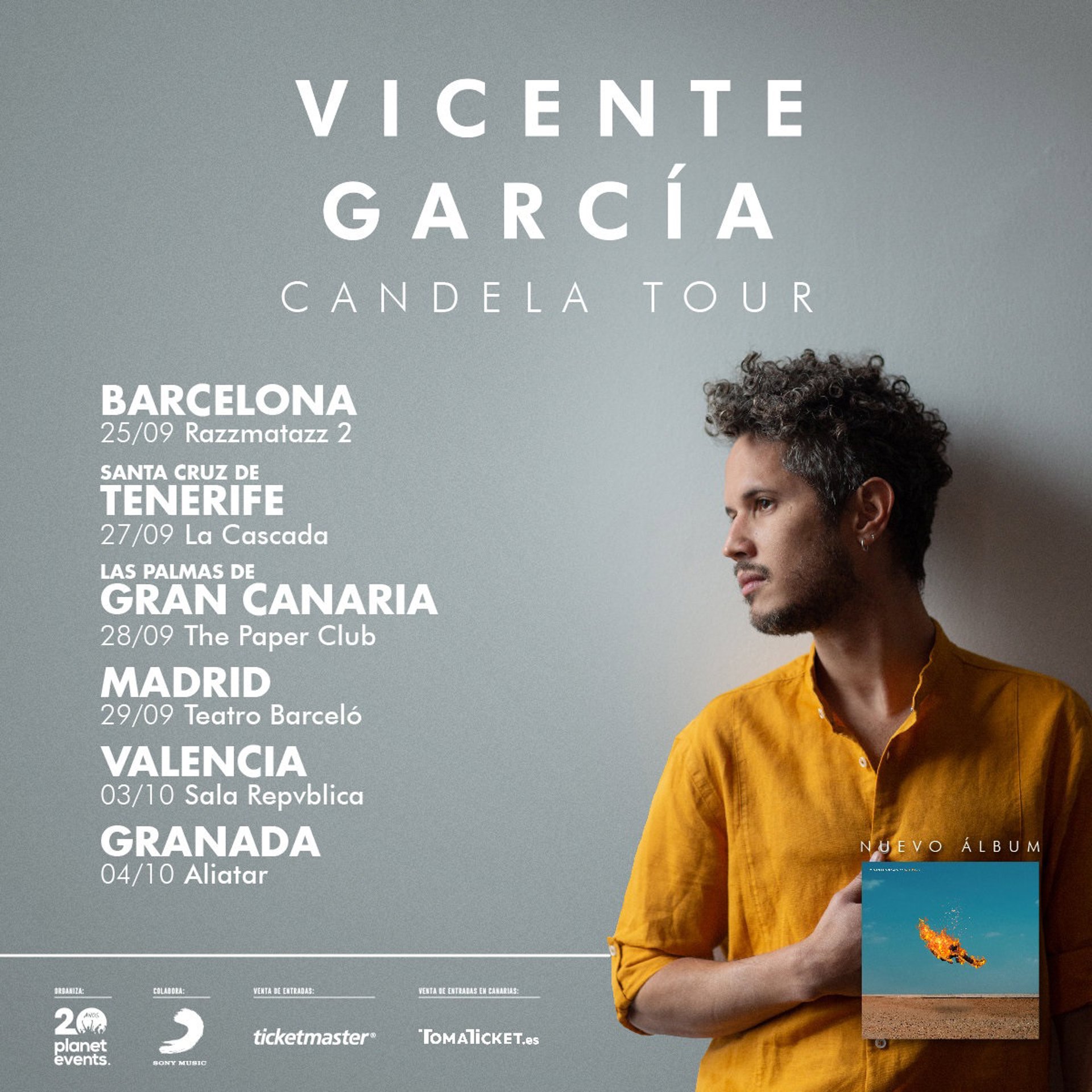 Vicente García, conocido también en nuestro país por haber actuado junto a Rubén Blades el pasado año, estará presentando Candela (Sony Music), su tercer trabajo discográfico, disponible ya en todas las plataformas digitales.