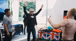 "Mis hombres ingleses favoritos", dice un sonriente Bon Jovi cuando aparece en camerinos con los brazos en alto, dando un cachete en el culo al guitarrista Phil Collins, para luego abrazarse fuertemente con el vocalista Joe Elliott.
