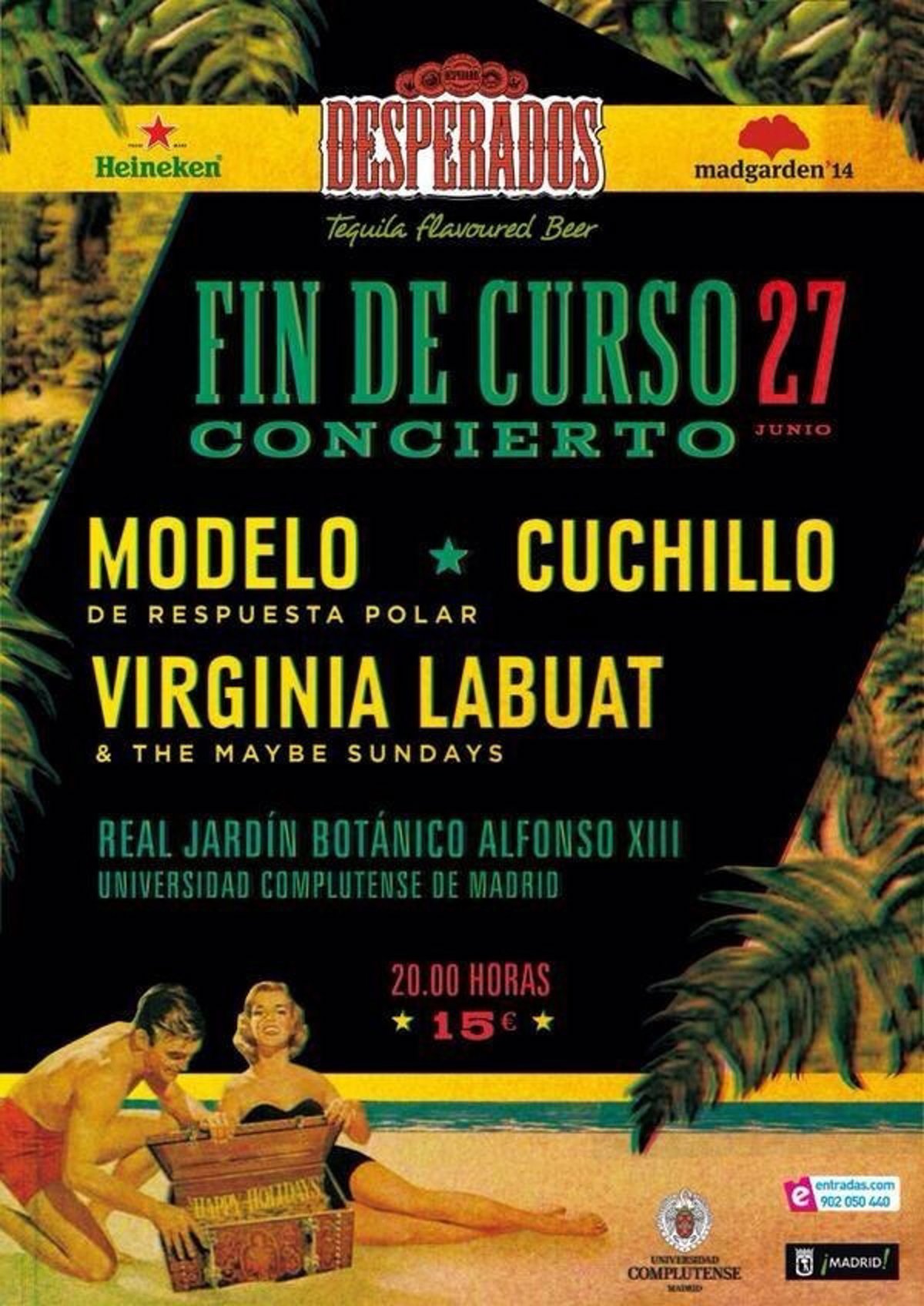 El próximo viernes 27 de junio tendrá lugar el Fin de Curso Desperados, con las actuaciones en directo de Virginia Labuat, Modelo de Respuesta Polar y Cuchillo.