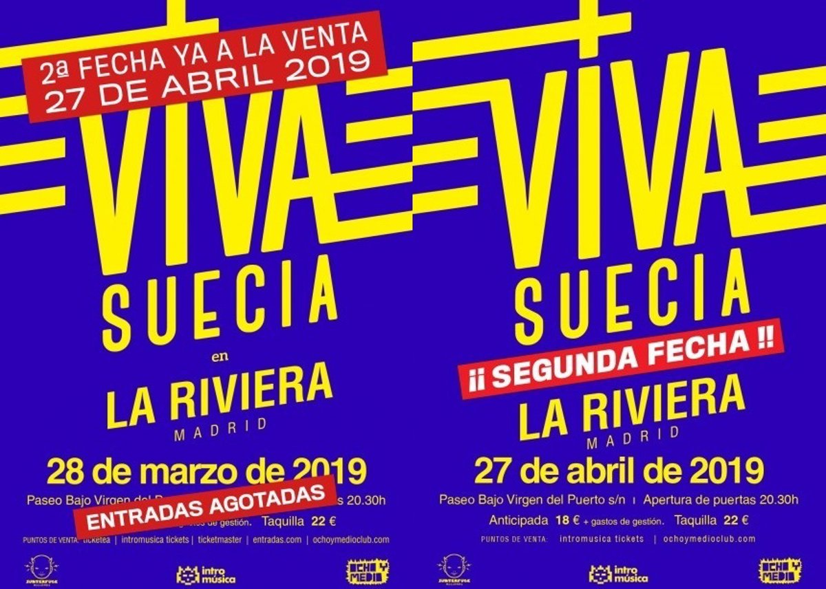 Viva Suecia han agotado las entradas para La Riviera el 28 de marzo y anuncian segunda fecha para el 27 de abril. Esta noticia pilla a la banda, además, de gira en Colombia, confirmándose así su buen momento.