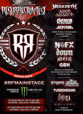 El municipio de Viveiro (Lugo) acogerá del 31 de julio al 2 de agosto la novena edición del festival 'Resurrection Fest', que reunirá a 70 grupos de heavy metal y hardcore-punk, entre ellos 'Megadeth', el grupo del exguitarrista de 'Metallica', Dave Mustaine.