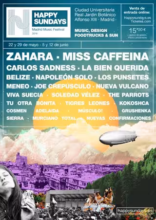 Las entradas se pueden adquirir en la página web de Happy Sundays y en Ticketea.com a un precio de lanzamiento de 15€ más gastos de gestión para las 300 primeras entradas de cada domingo.