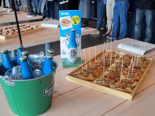 Una de las iniciativas lleva por nombre 'Pintxo Jazz', a la que se ha adherido una importante representación de bares donostiarras, consiste en la oferta de una cerveza Heineken, diseñada especialmente para el Jazzaldia y "vestida" con el cartel del certamen, más un pintxo, todo ello al precio de 3 euros.