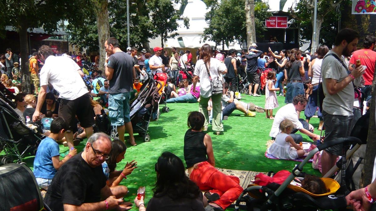 La música electrónica que durante estos días ha reinado en el Sónar ha dejado paso a una diversión más familiar, y las cervezas y los combinados han sido sustituidos por papillas, biberones y cochecitos donde los pequeños han podido hacer una tranquila siesta.