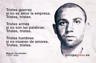Hoy se cumplen 75 años de la muerte del poeta, y desde EuropaPress hacemos un repaso de la vida y obra de Miguel Hernández, con 10 de sus poemas imprescindibles.