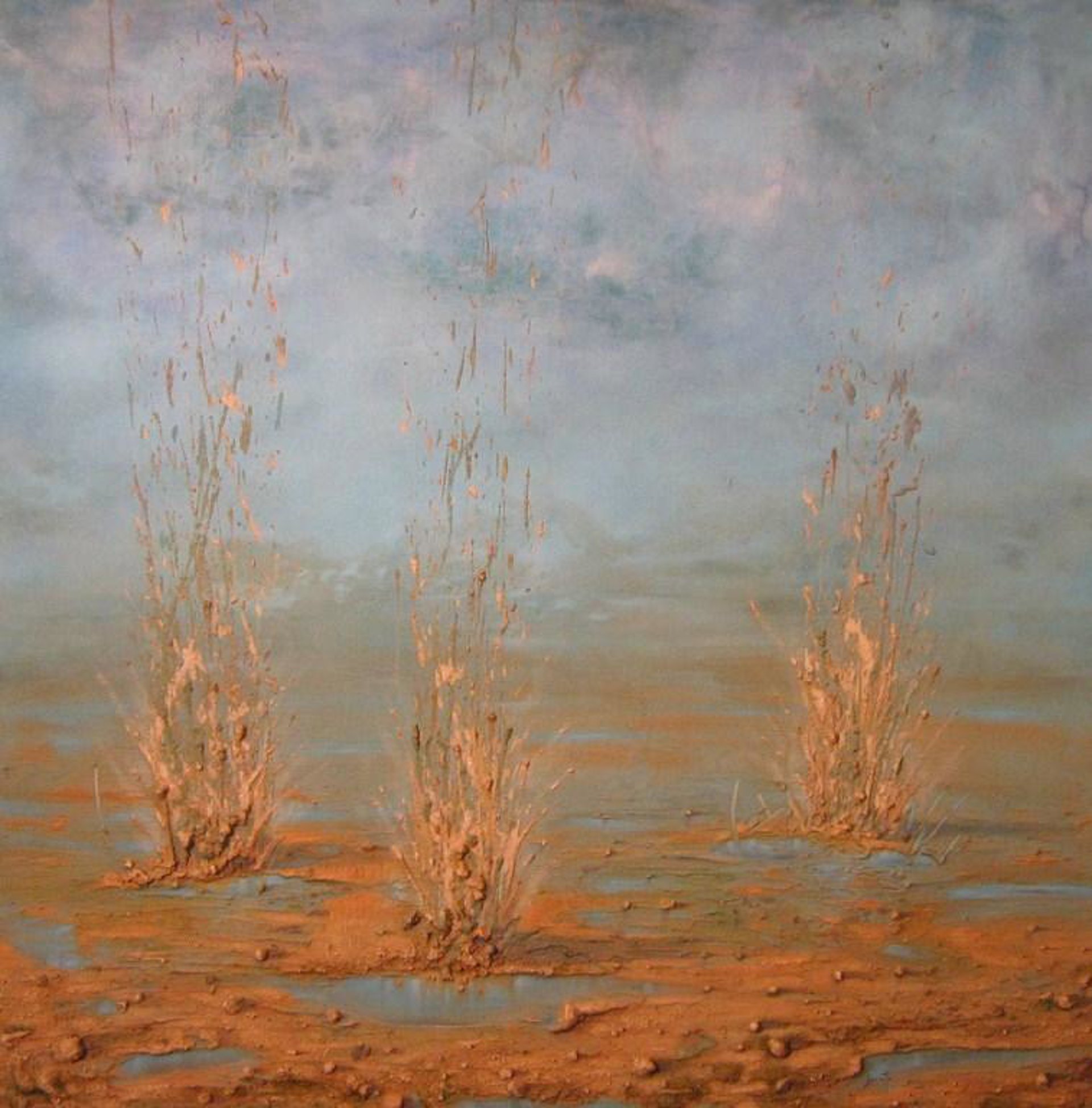 El pintor Javier Serrate expone en la Galería de Arte Tiless de Zaragoza su colección titulada "Partiendo del barro", que recoge una serie mixta de óleo y acrílico encolado a tabla de sus obras más antiguas y más nuevas unidas por un denominador común de agua y tierra.