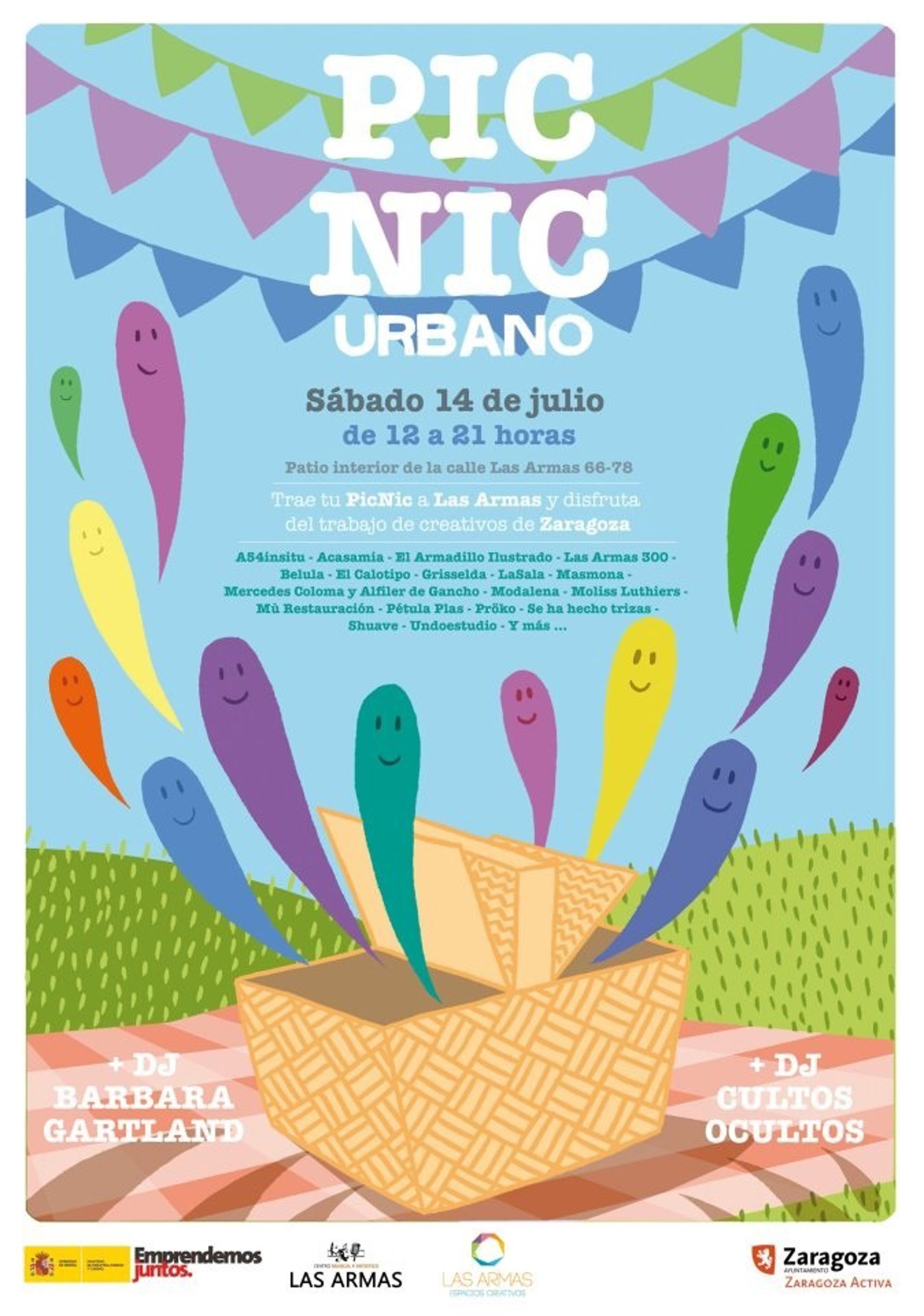 Zaragoza Activa y Las Armas Espacios Creativos han organizado este sábado 14 de julio una nueva edición del 'Picnic Urbano' en su versión veraniega, con la colaboración del Centro Musical y Artístico 'Las Armas'.