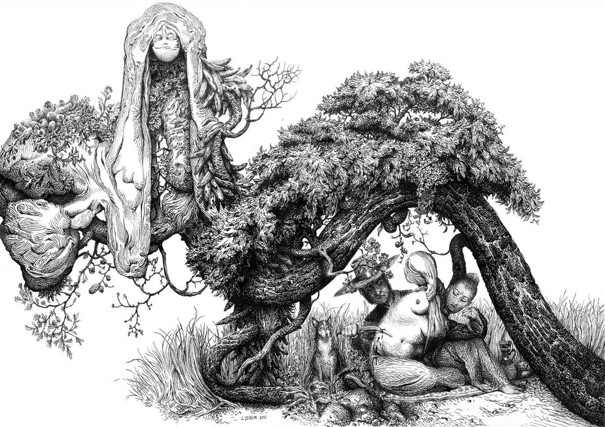 El artista Jesús Zurita propone un recorrido por sus tenebrosos bosques en la exposición sobre sus dibujos 'Ida y trasiego', una nueva propuesta del programa 'Conexiones', en el que los artistas que participan han de seleccionar una obra de la Colección ABC y otra perteneciente a la Colección Banco Santander, estableciendo entre ellas algún tipo de confrontación o diálogo como punto de arranque de su muestra.