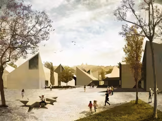 Su intencionada ambigüedad y aparente desjerarquización de los edificios, junto a los colores terrosos para las fachadas exteriores, busca que el conjunto cultural se mimetice con el entorno, tanto desde la Vega Baja como desde el casco histórico de Toledo.