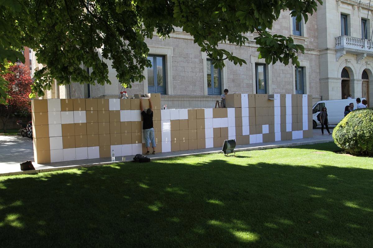 El colectivo artístico CUnet ha presentado este martes la obra artística 'ESPACIO', un muro de 18 metros de largo y 3 de alto realizado con 250 cajas de cartón en el que aparece la palabra "espacio" con el objetivo de reivindicar Cuenca como un lugar para que creadores y artistas puedan realizar su trabajo.