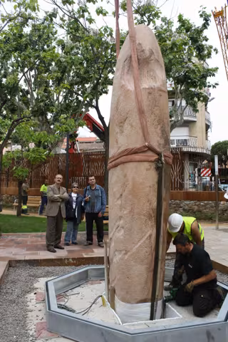 El menhir se podrá visitar a partir del 11 de junio en el Parque de Can Mulà de la ciudad vallesana, donde ya se encuentra instalado.