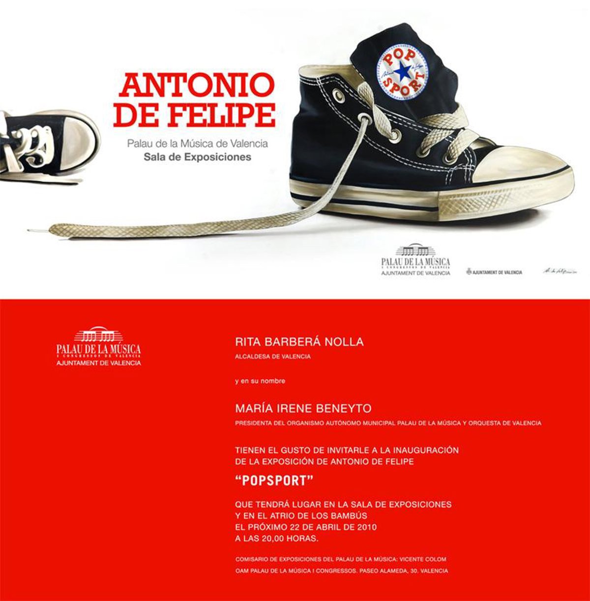La exposición de Antonio de Felipe 'Popsport', que se ha podido ver hasta este jueves en el Palau de la Música de Valencia, se ha convertido en la muestra pictórica individual más visitada, de las que se han programado en el Palau de la Música a lo largo de toda su historia ya que, desde su inauguración el 22 de abril, han asistido 7.234 espectadores, repartidos entre los dos espacios del auditorio, la Sala de Exposiciones y el Atrio de los Bambúes.
