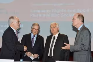 El consejero ha defendido que la sociedad catalana está cohesionada desde el plurilingüismo, y Trias ha añadido que "la diversidad lingüística no daña la convivencia; al contrario, es un elemento de cohesión".