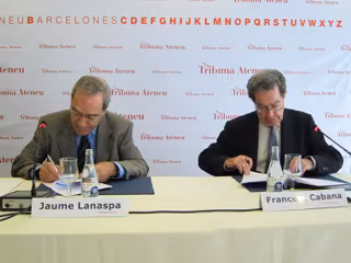 Lanaspa y el presidente del Ateneo Barcelonès, Francesc Cabana, han aprovechado la celebración de la Tribuna Ateneu para firmar un acuerdo de colaboración que reafirma el compromiso con temas sociales.