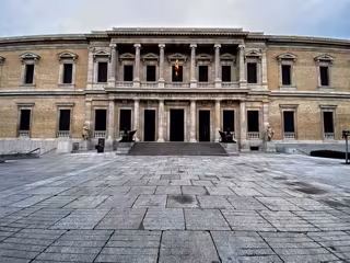 Entrada principal del Museo Arqueológico Nacional (MAN) flanqueada por dos esfinges aladas, en Madrid (España) a 29 de enero de 2020. - Eduardo Parra - Europa Press - Archivo