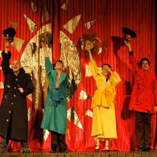 Este viaje por los diferentes momentos de la historia del teatro utilizará diversos estilos y lenguajes relacionados con cada una de les épocas, como pueden ser máscaras, payasos, teatro de objetos, música, grandes artefactos.