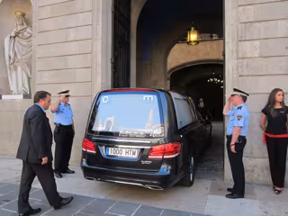 El féretro del cantante barcelonés Pere Pubill Calaf 'Peret' ha llegado a las 10.00 horas de este jueves al Ayuntamiento de Barcelona, que durante toda la jornada acogerá la capilla ardiente por expresa petición de la familia.