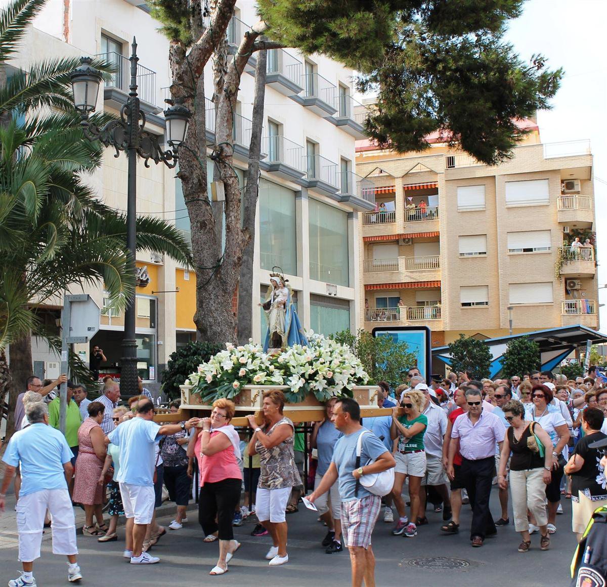 Una vez finalizado el recorrido, los romeros portaron el trono de la Virgen, hasta la plaza donde se ofició una Misa de Campaña con una ofrenda floral realizada por el alcalde de Los Alcázares, Anastasio Bastida. Finalizada la Misa, se dio paso a la Cena de Hermandad.