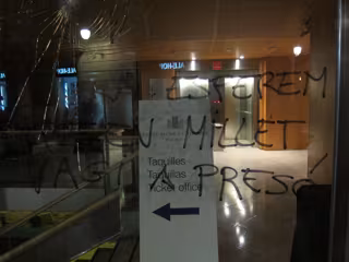 Un grupo de vándalos ha destrozado los cristales de las puertas y los laterales del Palau de la Música, después de que los Mossos d'Esquadra dispersaran la manifestación alternativa durante la jornada de huelga en Barcelona.
