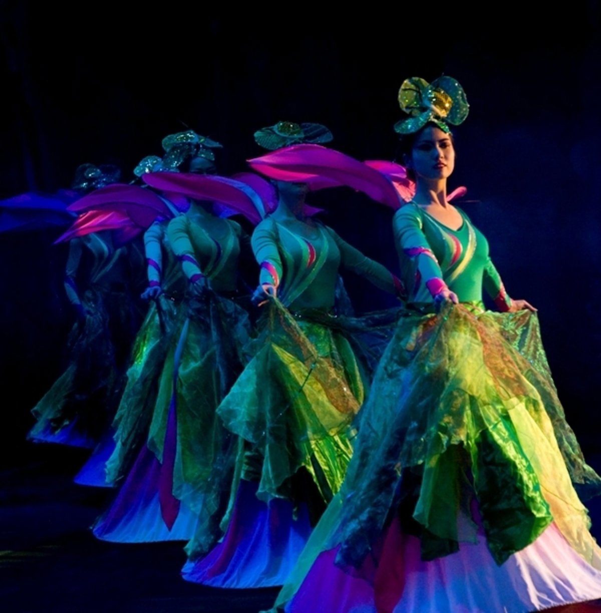 La tranquilidad del alba, la fiebre del mediodía y la juerga de la noche antes de su despliegue son el telón de fondo para la acción de flores, setas, libélulas, ranas, loros, ardillas, monos, leones, arañas o mariposas. Acostumbrado a presentarse más en teatros que en carpas, el Circo Acrobático Nacional Chino no utiliza animales reales en sus espectáculos.
