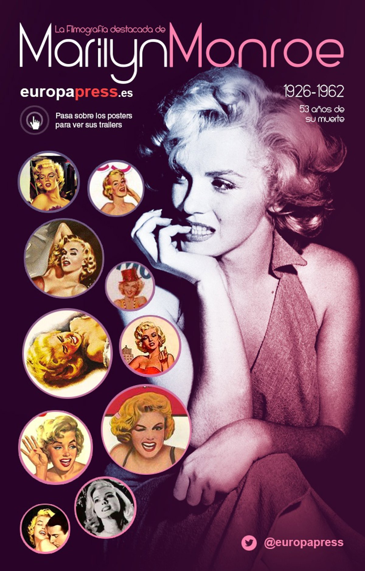 Se cumplen 53 años de la muerte de una de las actrices más conocidas y mitificadas de Hollywood: Marilyn Monroe, uno de los mayores exponentes del glamour y la belleza de los dorados años cincuenta.