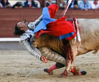Cuevas es el ganador del segundo premio de Deportes por la fotografía en la que capta la cogida del torero Julio Aparicio en la pasada Feria de San Isidro de Madrid, en la que se aprecia como uno de los pitones del toro le atravesó el cuello y le salió por la boca.