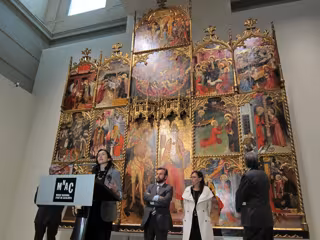 Este retablo ha sido comprado a una colección particular catalana por 650.000 euros, y es especialmente valioso porque se trata de la única obra completa de Mates que se puede ver en el Mnac; las otras dos son la tabla con 'San Sebastián y el Calvario' y el fragmento de la tabla del 'Llanto sobre el Cristo muerto'.