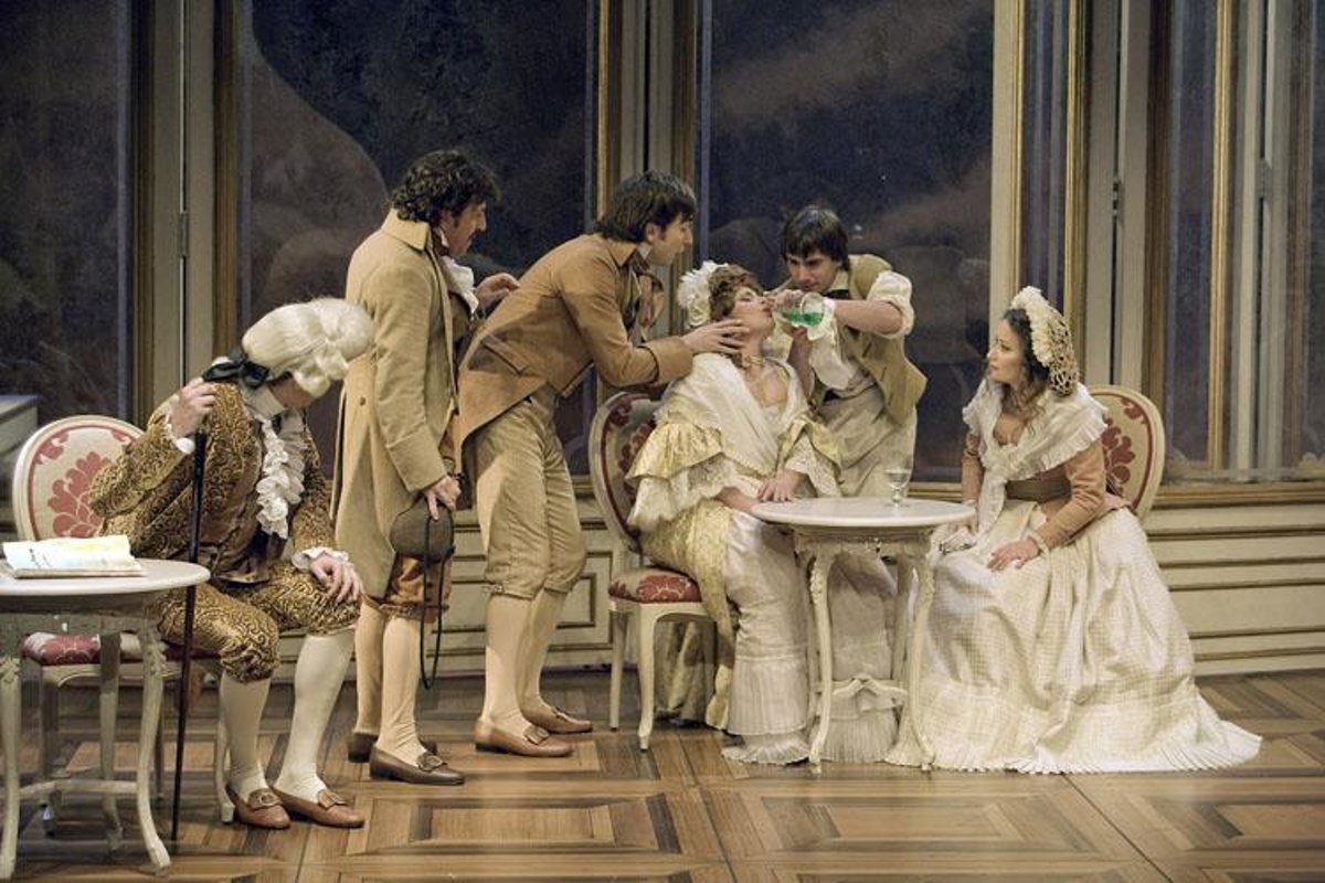 La puesta en escena, a cargo de José Luis Raymond, muestra "un café brillante lleno de espejos y cristaleras haciendo un juego de transparencias al estilo de los cafés italianos", explicó su responsable.