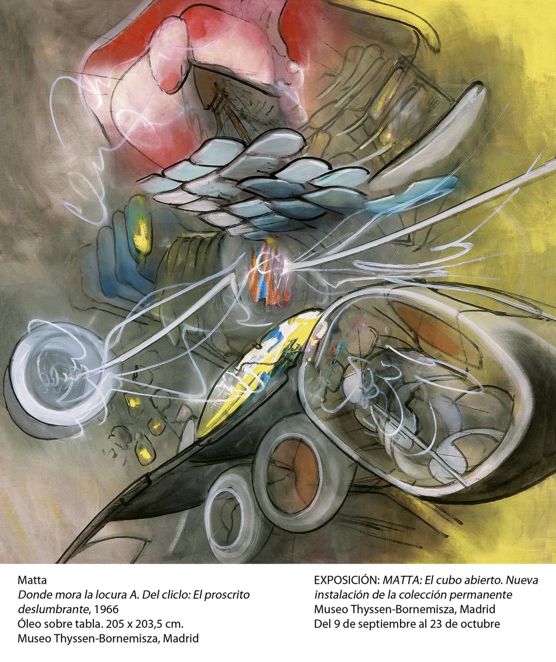 El Museo Thyssen acogerá a partir del próximo 9 de septiembre una nueva instalación de la Colección Permanente con obras del artista chileno Matta (Santiago de Chile 1911-Civitavecchia 2002), de quien este año se celebra el centenario de su nacimiento.