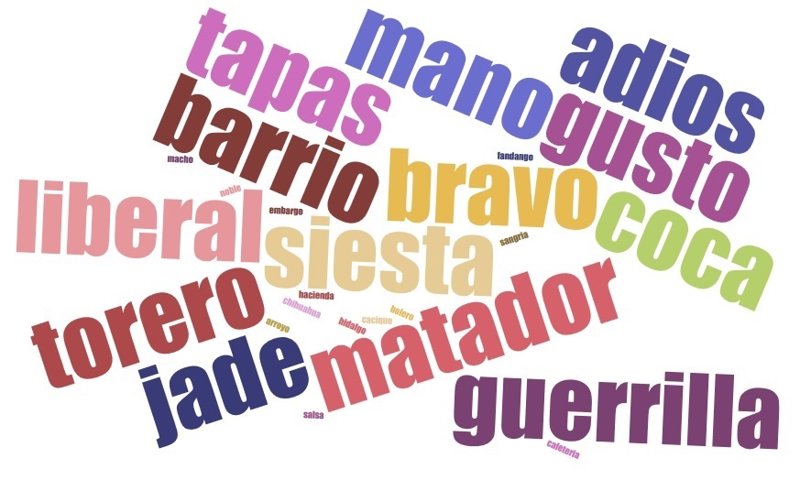 Y de la misma manera el español se ha introducido en todos esos idiomas con palabras que por diversas características eran más fáciles dejarlas en castellano que traducirlas, como puede ser el caso de 'guerrilla', 'siesta' o 'matador'.