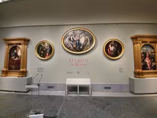 El Prado, con el apoyo de Funcave, el patrocinio de la Fundación Amigos del Museo del Prado y la colaboración de la Comunidad de Madrid, puede ofrecer así a sus visitantes la oportunidad de contemplar en la sala 9 B, hasta el próximo 28 de febrero, el conjunto de pinturas realizadas por el Greco para este templo, entre 1600 y 1605, junto a las telas del retablo mayor del Colegio de Doña María de Aragón (1597/1600), conservadas en el museo.