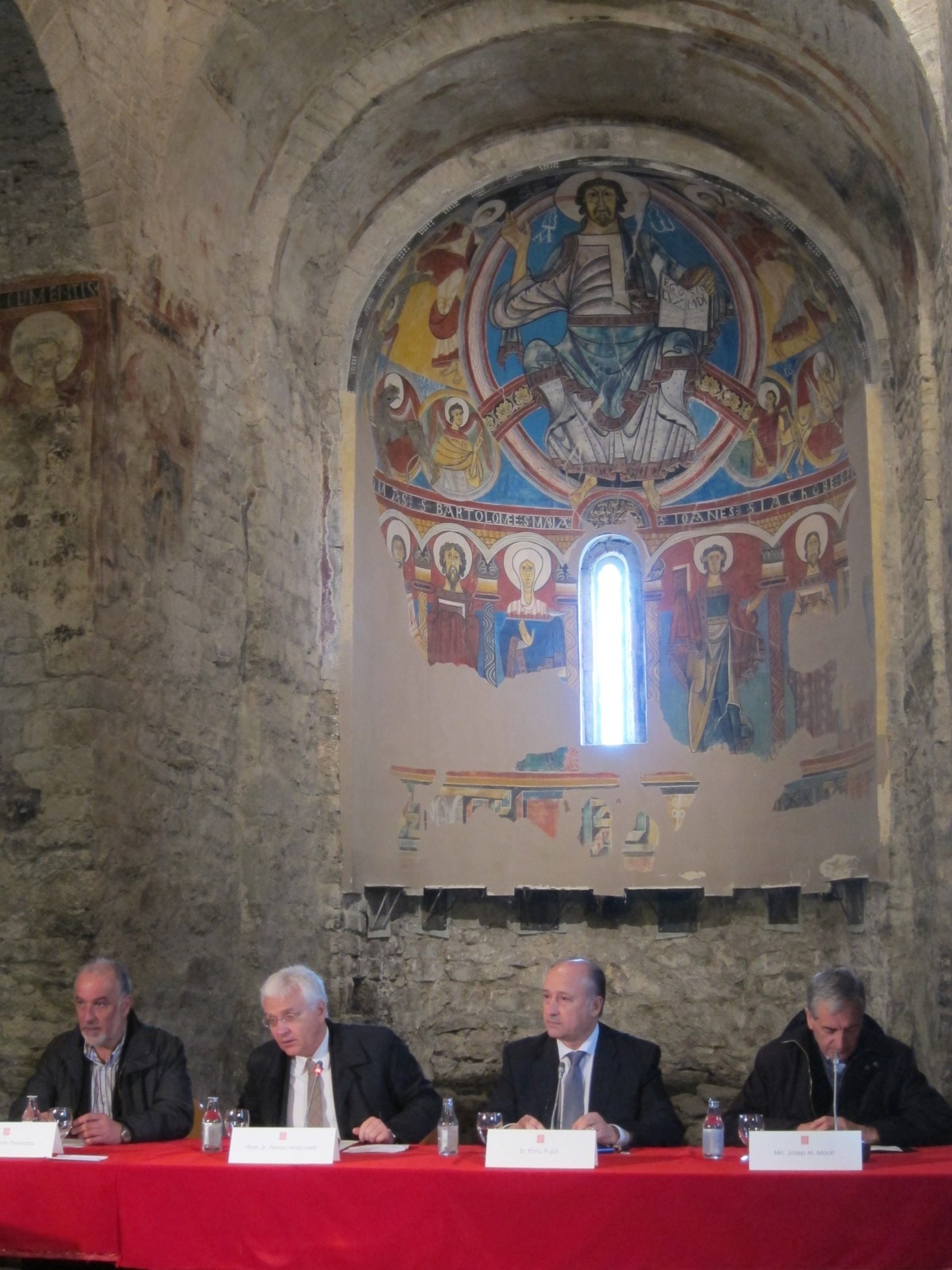 Las pinturas del ábside fueron arrancadas de su lugar original en 1920 y trasladadas al Museu Nacional d'Art de Catalunya (Mnac) para su conservación y exposición, y en su lugar yace una réplica realizada por Ramon Millet en los años 60, que ahora será retirada para su restauración y que será ubicada todavía en un lugar por determinar, "quizás en el entorno de Boí", ha augurado Mascarell.