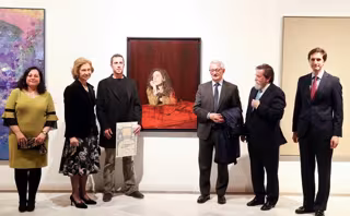 La reina Sofía ha presidido este jueves la entrega del 55 edición de el Premio Reina Sofía de Pintura y Escultura, que este año ha recaído en el madrileño Manuel Díaz Meré por su retrato 'Lucía componiendo'.