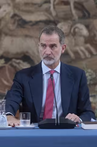 El Rey de España, Felipe VI, durante la reunión del Patronato de la Fundación Pro Real Academia Española (Fundación Pro - RAE), en el Palacio Real de El Pardo, a 12 de diciembre de 2022, en Madrid (España). - Alberto Ortega - Europa Press