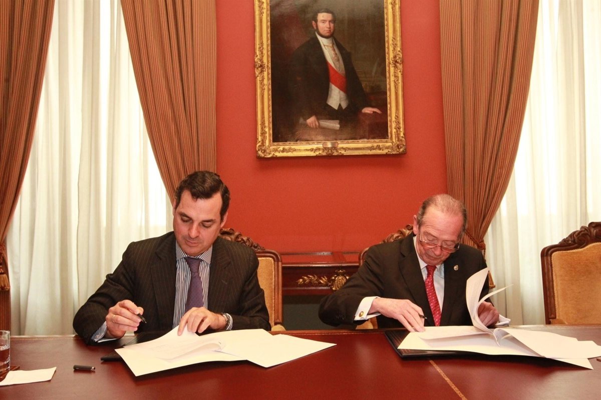El presidente de la Corporación Radio y Televisión Española (RTVE), Leopoldo González-Echenique, y el director de la Real Academia Española (RAE), José Manuel Blecua, han suscrito este viernes un convenio de colaboración para dar difusión a la conmemoración del tricentenario de la Academia, fundada en 1713.