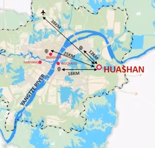 Huashan se halla a 20 kilómetros al este de Wuhan, capital de la provincia china de Hubei, a unos 850 kilómetros de Shanghái y a 1.200 kilómetros de Pekín, la capital china.