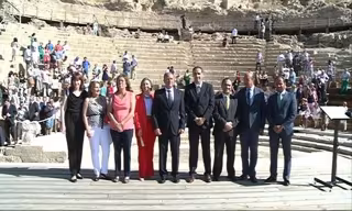 Monago ha asistido al acto de apertura al público del Teatro Romano de Medellín, junto al delegado del Gobierno, Germán López Iglesias, en un acto en el que también se ha inaugurado la remodelación del centro de interpretación.