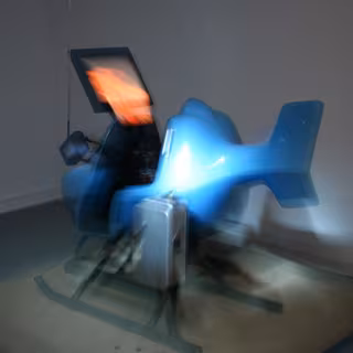 Este es el propósito que persigue Magnus Wallin en la pieza que abre la exposición titulada 'Exercise Parade'. El espectador, al encontrarse en un pasillo entre dos pantallas enfrentadas entre las que va saltando el jugador, se introduce en el escenario del videojuego convirtiéndose en jugador.