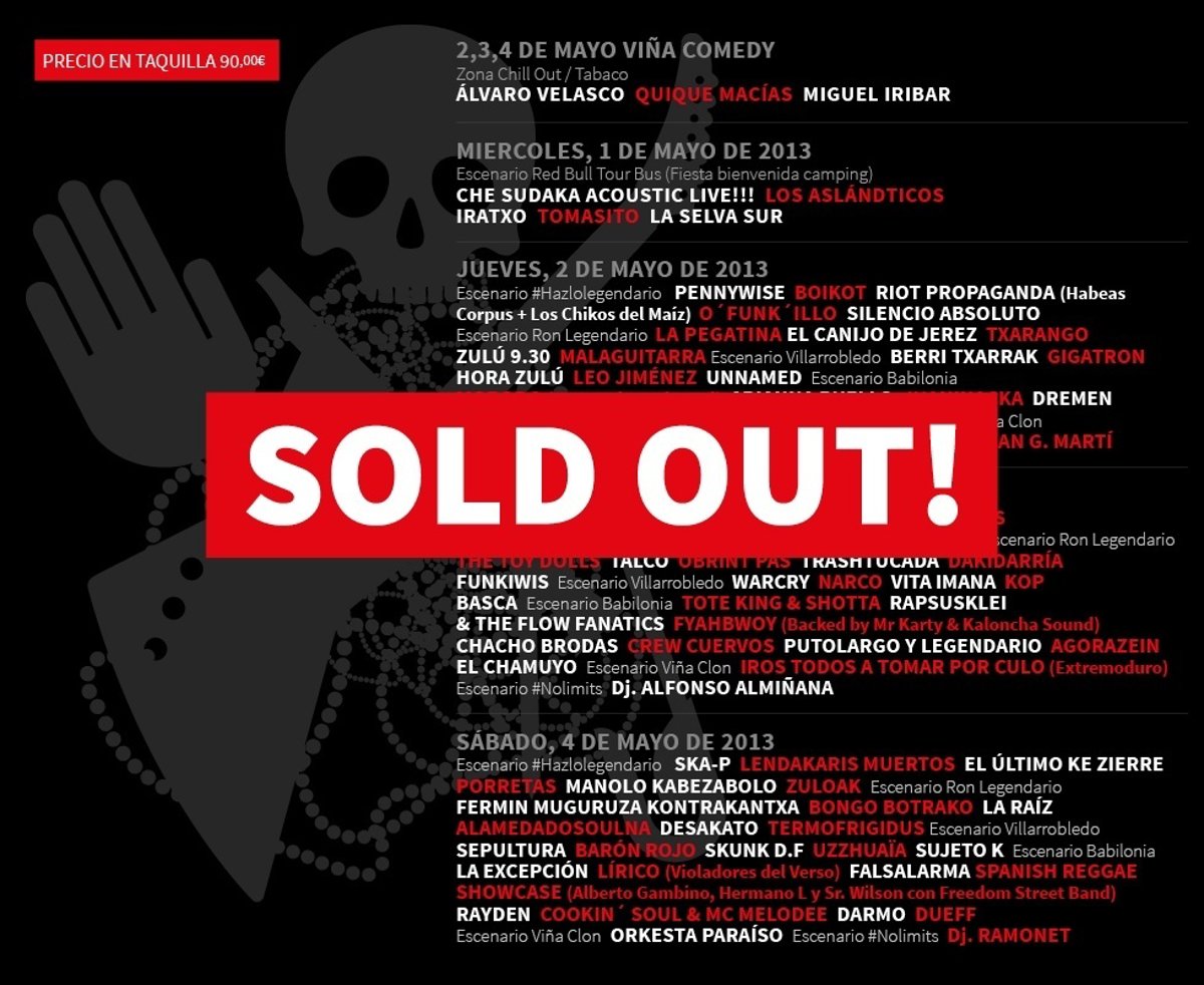 Viña Rock ha agotado todas las entradas para la edición de 2013 que se celebra desde este miércoles, 1 de mayo, hasta el sábado 5 de mayo en Villarrobledo (Albacete).