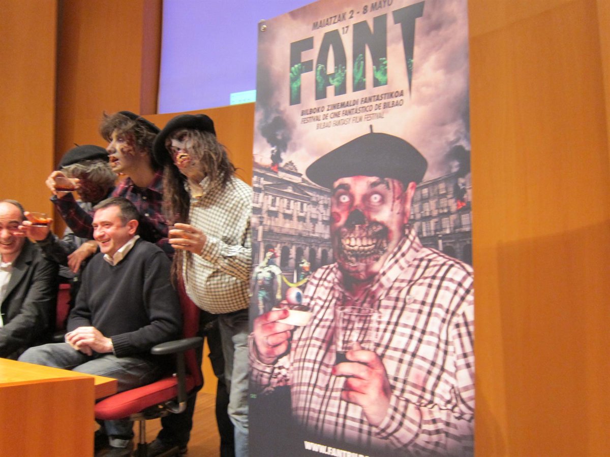 En ese sentido y en el transcurso de la rueda de prensa, se ha realizado una escenificación en la que una mujer ensangrentada irrumpía en la sala al grito de "Bilbao no es un lugar seguro". Están aquí", al tiempo que aparecían varios zombis, que han sido los encargados también de dar la vuelta al cantel anunciador del Fant.
