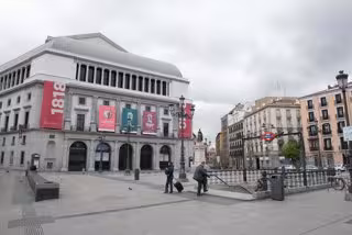 Plaza de Isabel II o Plaza de Ópera con el Teatro Real al fondo, vacía durante el estado de alarma decretado por el coronavirus, en Madrid (España), a 16 de marzo de 2020. - Joaquin Corchero / Europa Press