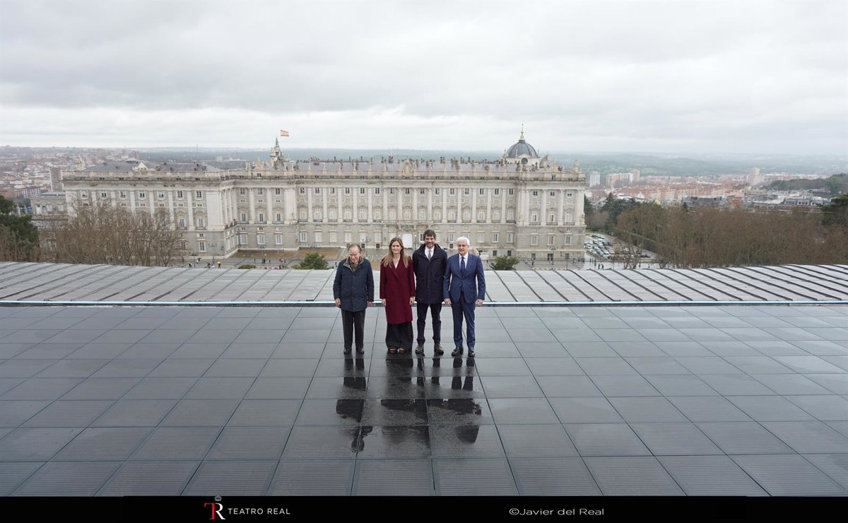 El Teatro Real ha presentado este jueves su nueva cubierta solar transitable de 1.500 m2, que se compone de 2.198 baldosas fotovoltaicas, conectadas en la modalidad de autoconsumo individual sin excedentes, que permitarán ahorrar 1,5 GWh/año, como ha dado a conocer la institución en un acto que ha contado con la presencia de la vicepresidenta tercera y ministra para la Transición Ecológica y el Reto Demográfico, Sara Aagesen, y el ministro de Cultura, Ernest Urtasun.