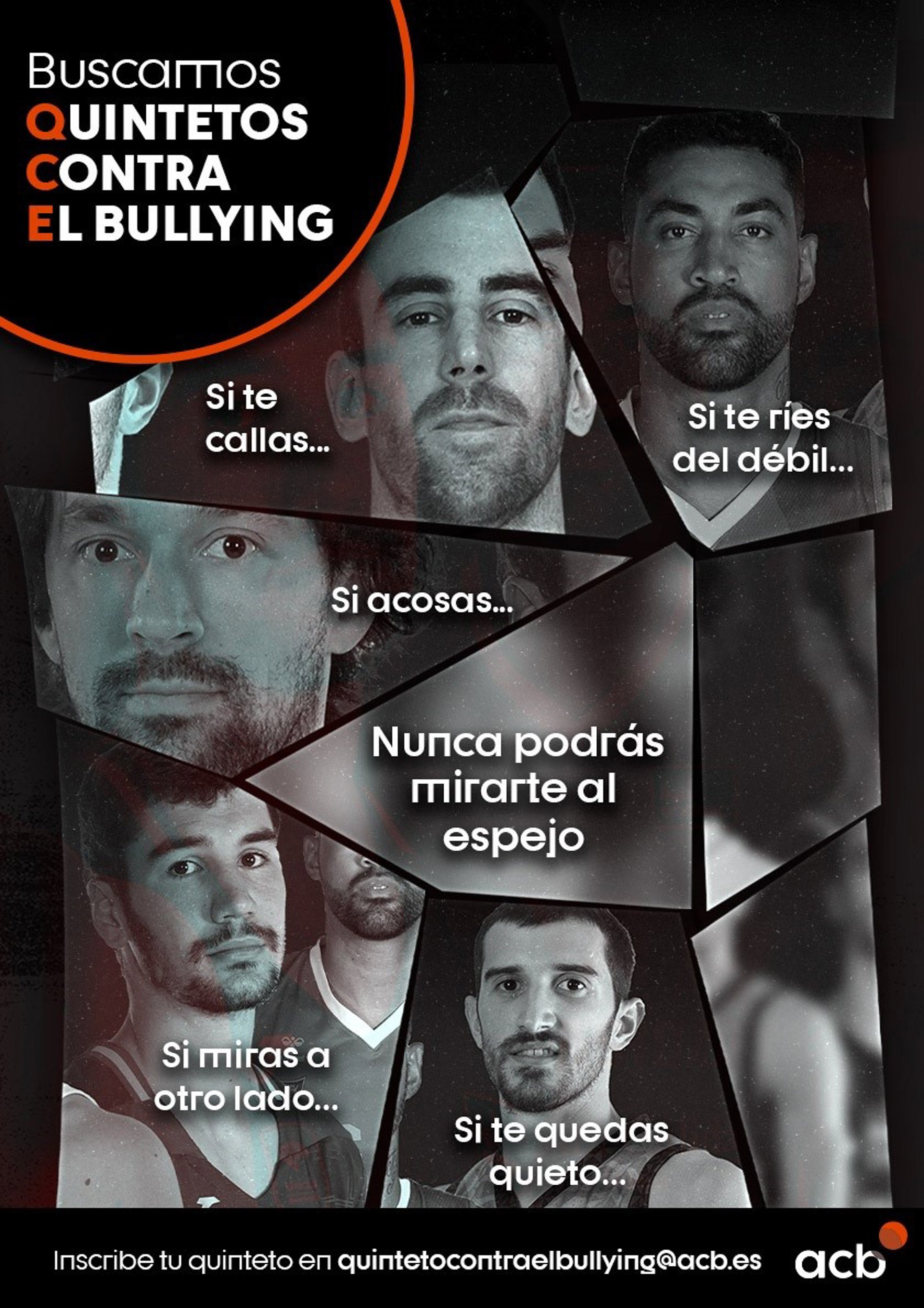 La ACB continúa luchando contra el acoso escolar y ha lanzado la iniciativa 'Quinteto contra el Bullying', que cuenta con la colaboración de los jugadores Darío Brizuela (Unicaja), Víctor Claver (Bara), Augusto Lima (UCAM Murcia), Sergio Llull (Real Madrid) Guillem Vives (Valencia Basket), que invitarán a niños y niñas de todo el país a que formen sus propios quintetos.